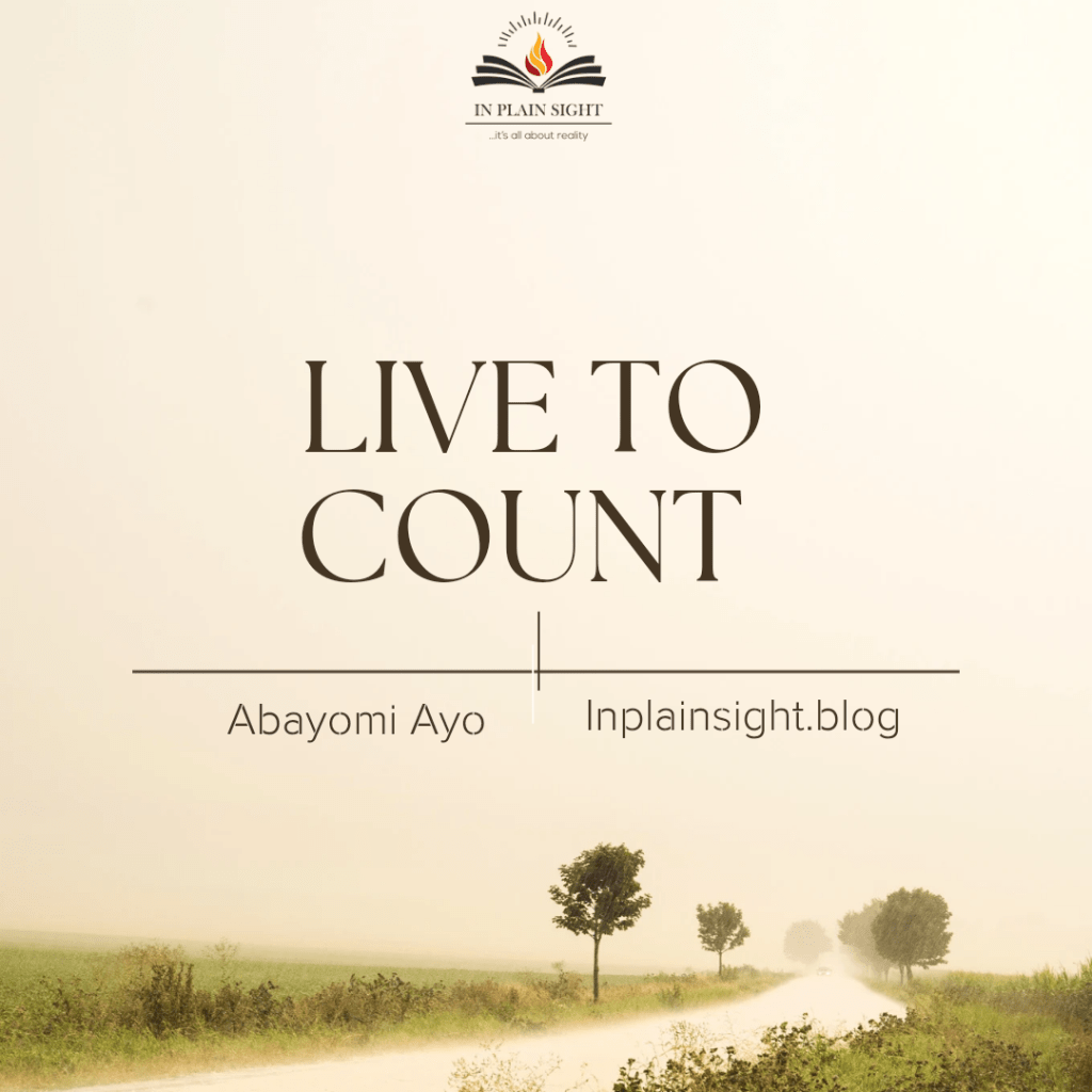 Live to count. Make your life count for God. May the Lord crystallize His agenda upon our hearts and may we have a compelling passion to be a part of it, submitting our lives at His feet, for His name and glory.